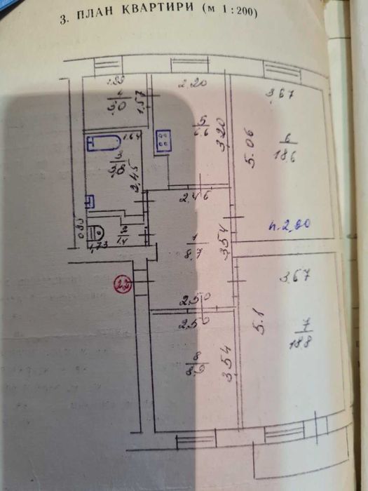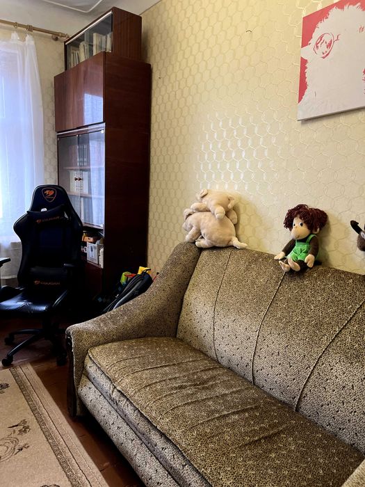 Розташована на 3-му поверсі цегляного будинку, загальна площа — 80 м² (+ засклений балкон).