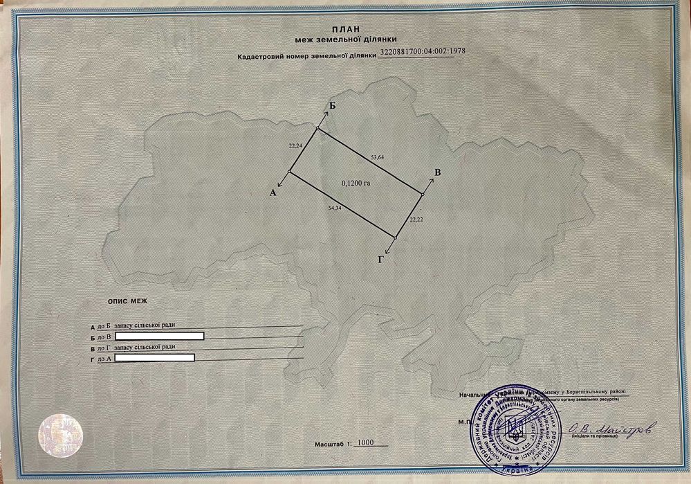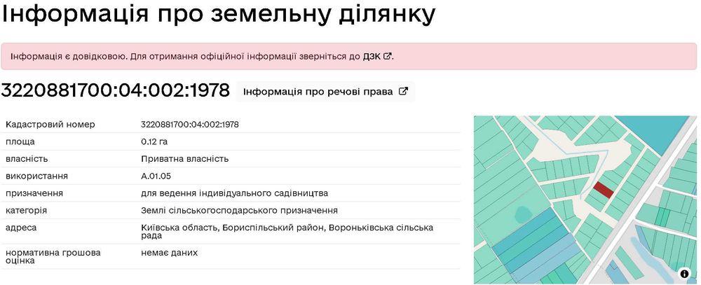 | Земельна ділянка: |