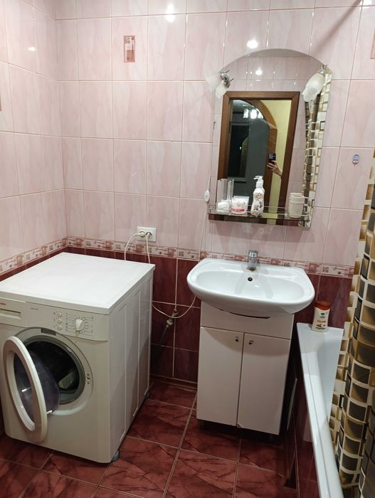 Санвузол роздільний. У ванній кімнаті є рукомийник, ванна, пральна машина.
