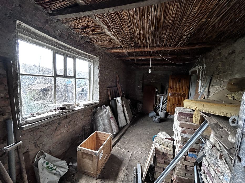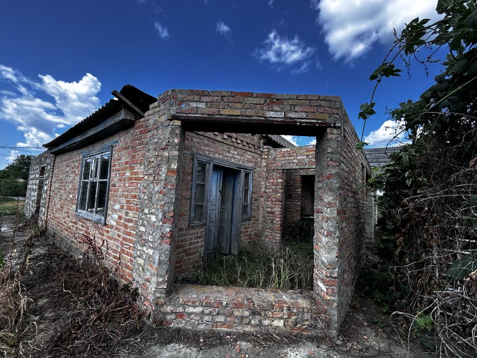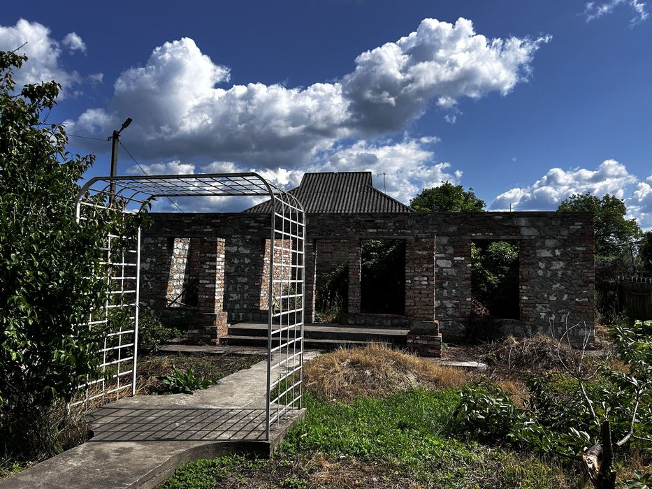 В одному дворі є будинок який потребує будівництва як зовні, так і всередині і потребує прибирання на ділянці,є погріб і арки для винограду