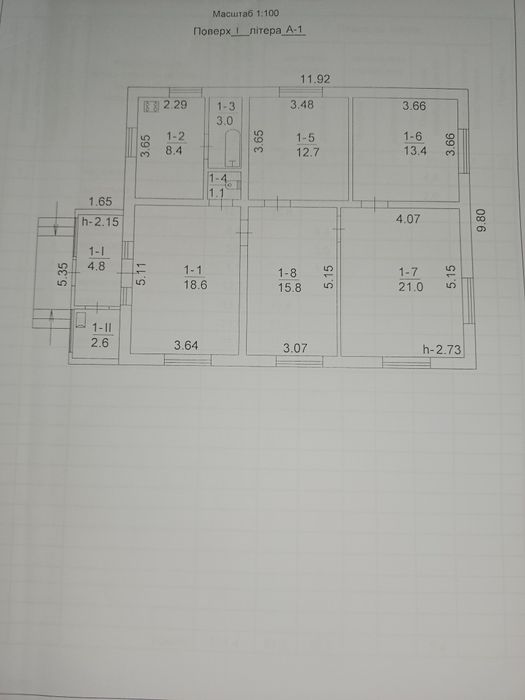 Загальна площа 101 кв.м., 5 кімнат з великими вікнами. Висота до стелі 3 м.