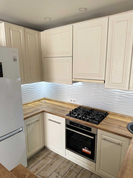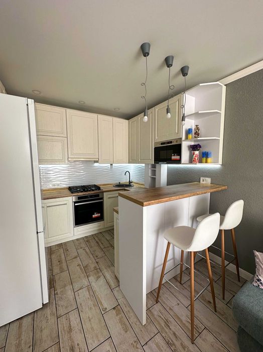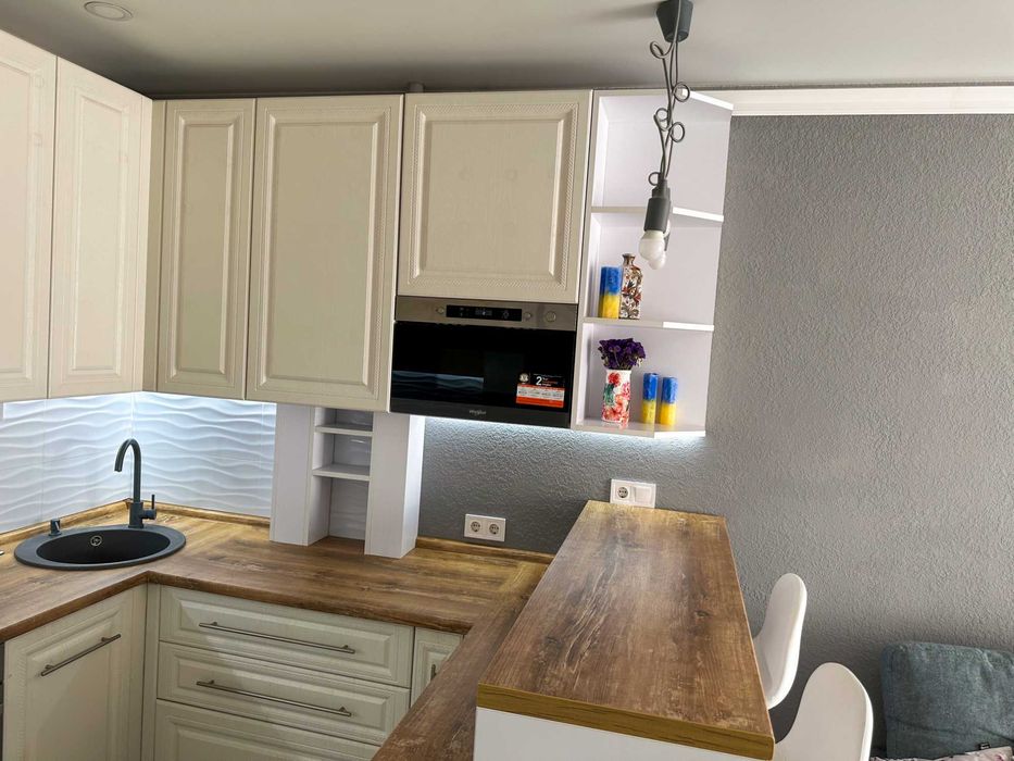 - Кухня поділена на три зони / кухонна / відпочинок / робоча зона,