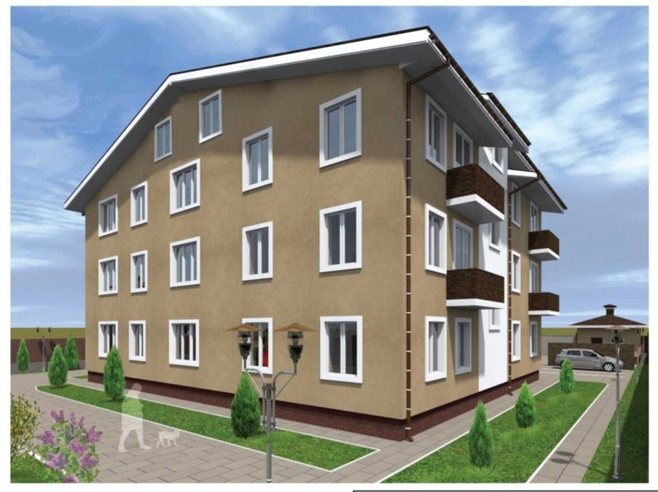 Квартира розташована на першому поверсі чотириповерхового 16-ти квартирного будинку. На першому поверсі - місця для дитячих колясок та велосипедів. Окрема, закрита територія. У дворі передбачено парко місце закріплене саме за цією квартирою. Дитячий майданчик, альтанка для відпочинку, зелена зона. Неподалік від будинку озеро, пляж, лісові насадження. Цей район забудований переважно приватними котеджами. За 10 хвилин ходьби знаходиться центр села. Опалення автономне електричне (електричний конвектор в кожній кімнаті), водопостачання – власна свердловина, гаряча вода – від бойлеру, каналізація – септик зі ступенем очищення - 98 % та дренажним полем (не потребує постійного відкачування). Будинок – цегла/газобетон, утеплення – 100 мм. Вікна – металопластикові з подвійним склопакетом та енергозберігаючим склом. В квартирі виконане чорнове оздоблення (штукатурка несучих стін, стяжка, встановлення вхідних дверей). Можливе виконання послуг з фінішного оздоблення та комплектації меблями. Вартість ремонту з матеріалами становить 350$/м2. + по термінах 1,5 – 2,5 міс і Ви можете заселятись!