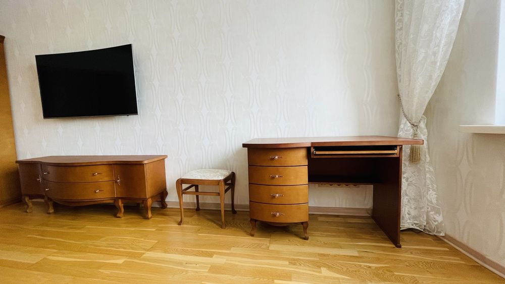 Вікна у двір. Гарне планування. Кімната 23 м. кв., кухня-вітальня 14 м. кв., хол 15 м. кв., санвузол 6 м. кв. Утеплена лоджія з підігрівом підлоги, трикамерні склопакети вікна Rehau, кладова у квартирі і у тамбурі. Бойлер на 80 літрів, побутова техніка, лічильники тепла і води, двозонний електролічильник. Шафа-купе, кухонний гарнітур, двері та меблі виготовлені з натурального дерева по індивідуальному замовленню. Низькі комунальні платежі.