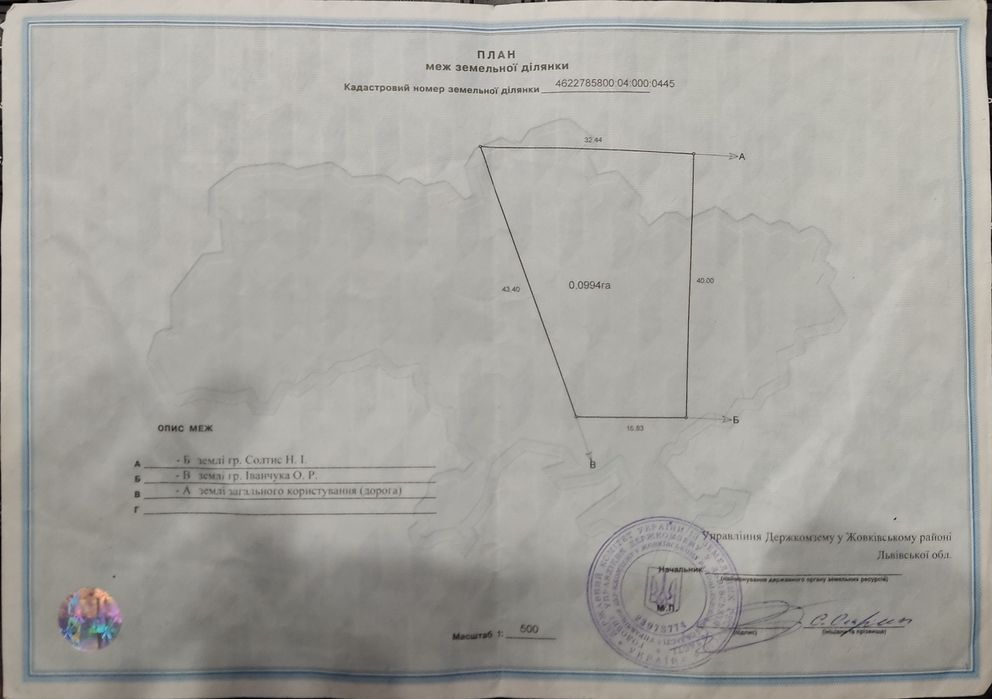 продам землю Львівська область Жовківський район село Мацошин