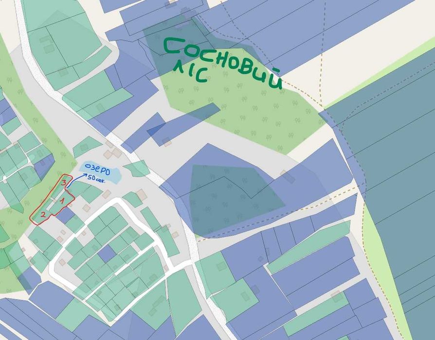 дача біля Львова (відпочинок біля озера для родини); Три суміжні дачні ділянки у шикарному місці біля озера з чудовим краєвидом на сосновий ліс.