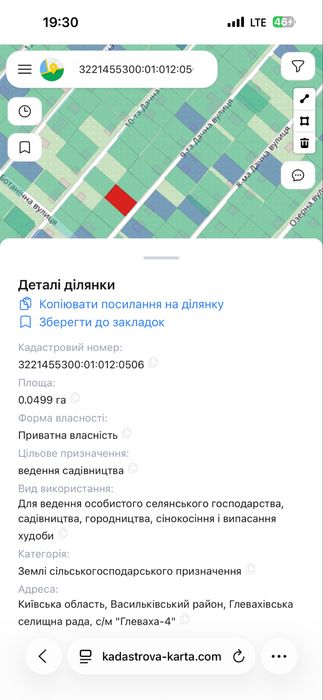 Кадастровий номер ділянки 3221455300:01:012:0506