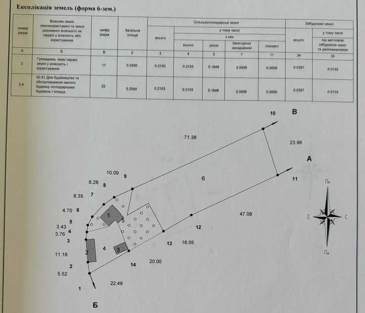 Земельних ділянок три, площею 0.28, 0.19 та 0.05 га відповідно.