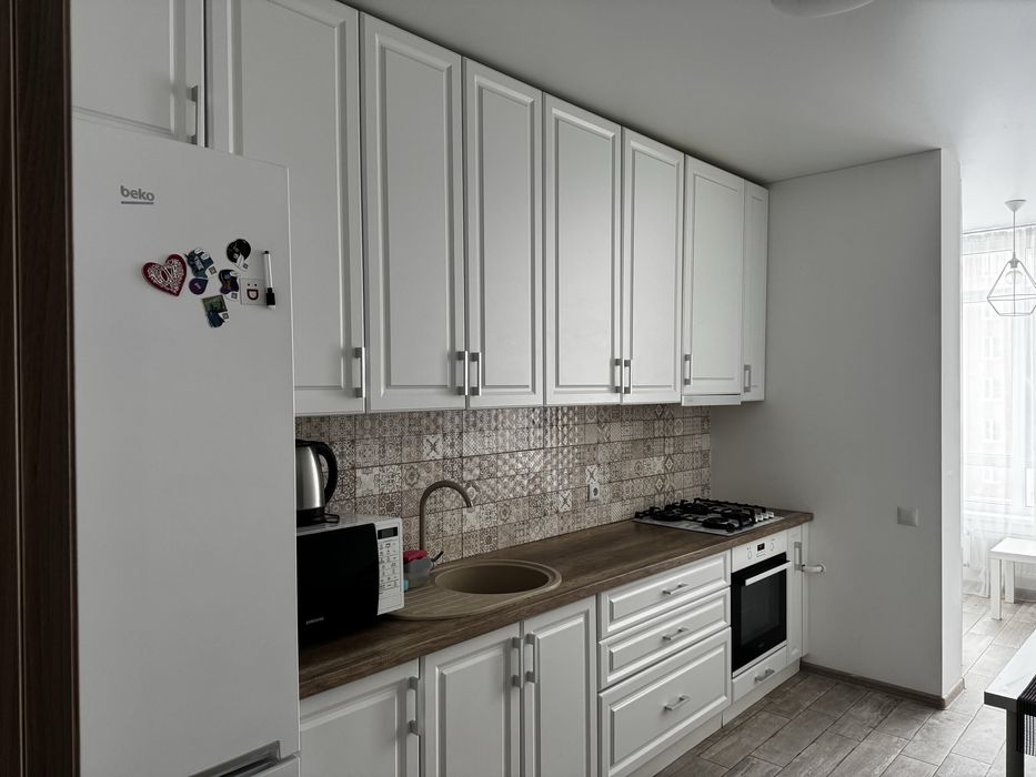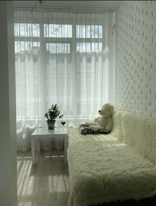 Довгострокова оренда Квартира ЖК Львівський маєток; Здам в довгострокову оренду власну квартиру. Євродвушка, 43 кв.м., одна велика світла кімната, та кухня із спальною зоною. В квартирі є пралка, великий телевізор, мікрохвильовка, холодильник, газовий котел. Плита - газова, духова шафа - електро. Велика гардеробна. Комфортно для проживання двох-трьох людей. На кухні напроти дивану розкладного можна повісити ще один телевізор.