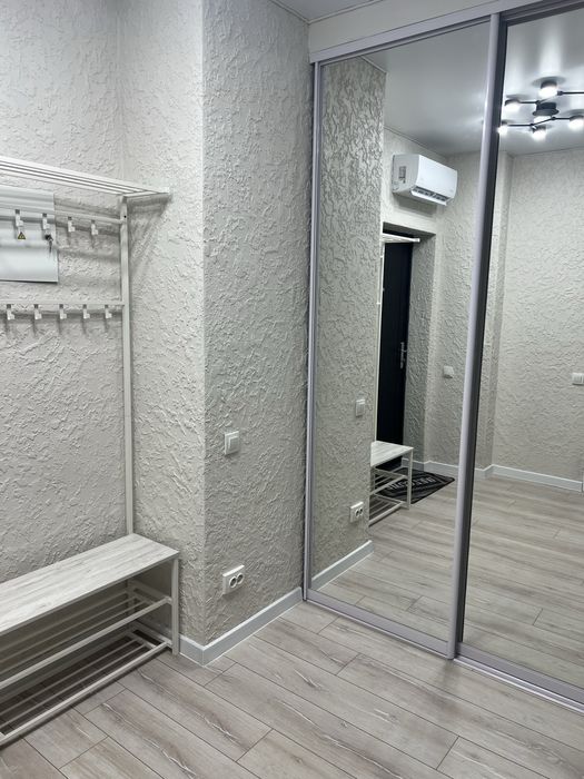Квартира має гардеробну кімнату. Велика кухня з виходом на балкон. В квартирі є все для зручного проживання: