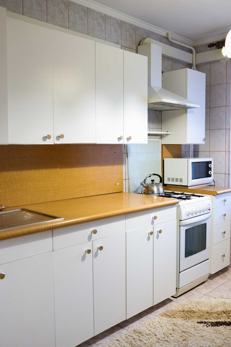 Залишаються всі меблі та техніка ( холодильник, пральна машина, мікрохвильовка, газова плита, витяжка). Квартира повністю готова до проживання.