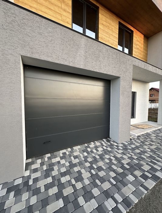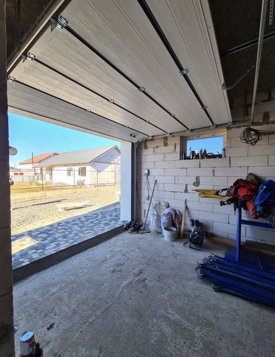 На першому поверсі гараж, висувні двері з двигуном.