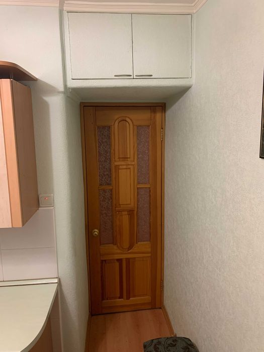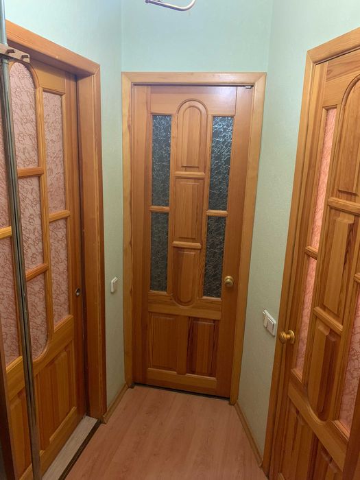 Металеві вхідні двері та дерев'яні всередині, дерев'яні міжкімнатні двері, підлога ламінат в усіх кімнатах та на балконі.
