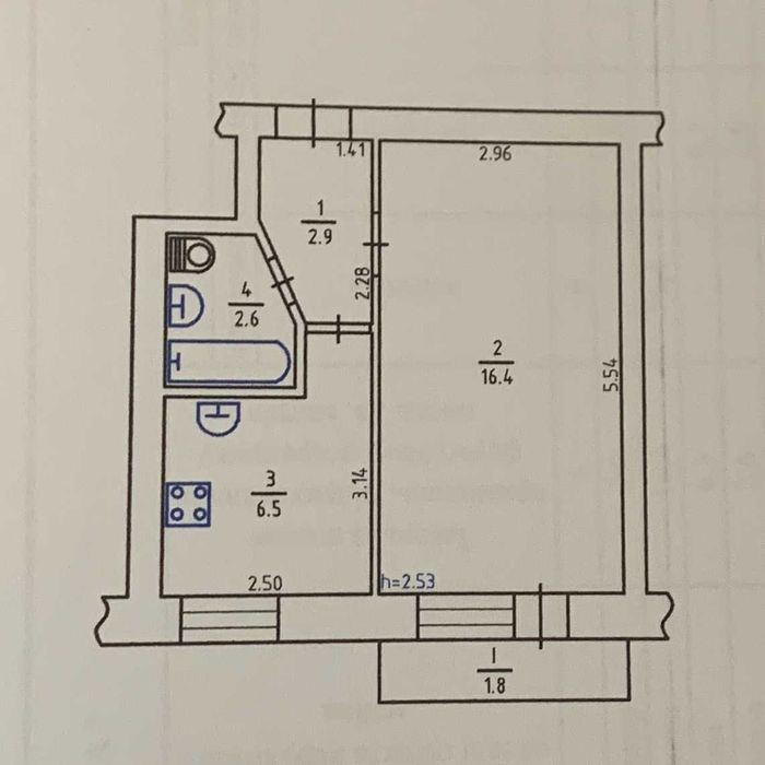 Загальна площа 30,2, житлова 16,4. Квартира тепла, вікна виходять на тихий двір.