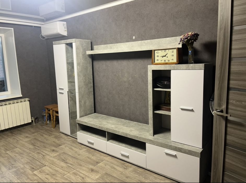Із меблів: меблева стінка, ліжко, шафа-купе, кухонний гарнітур.