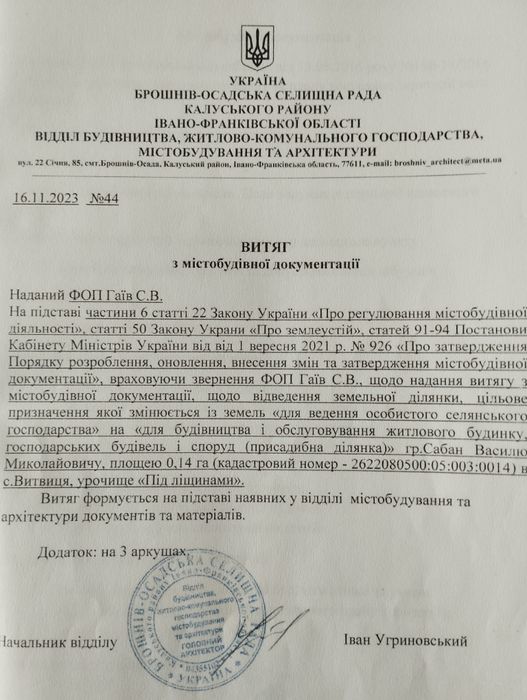 | Земельна ділянка: |