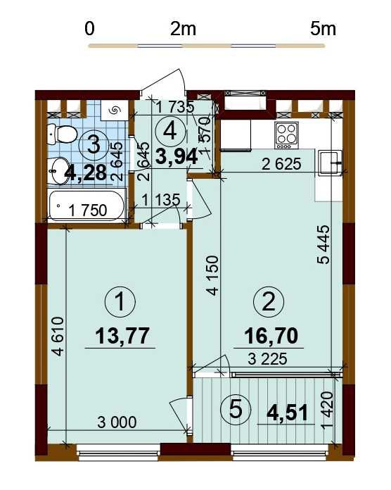 - найкраще функціональне планування: кімната 14м2 і велика кухня-вітальня 16,7м2, яку можна додатково збільшити за рахунок лоджії