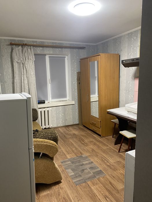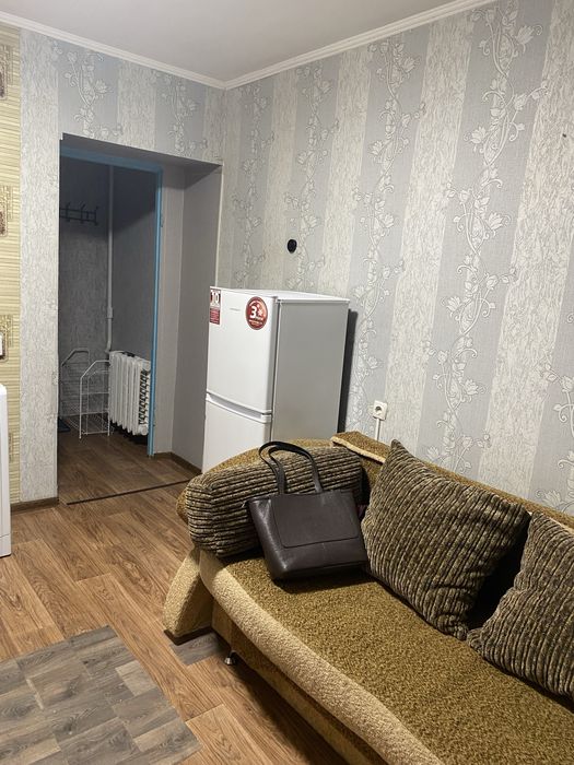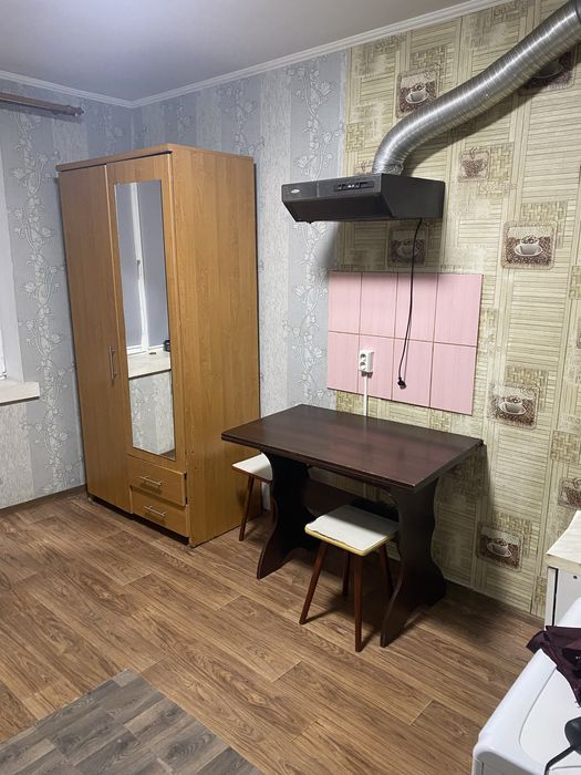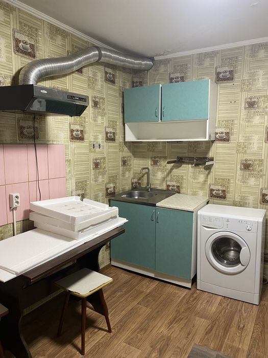 Загальний метраж малосімейки - 18 кв.м. Є ванна кімната, невеликий коридор та спальня. Із техніки: бойлер, пральна машина, холодильник та кухонна витяжка.