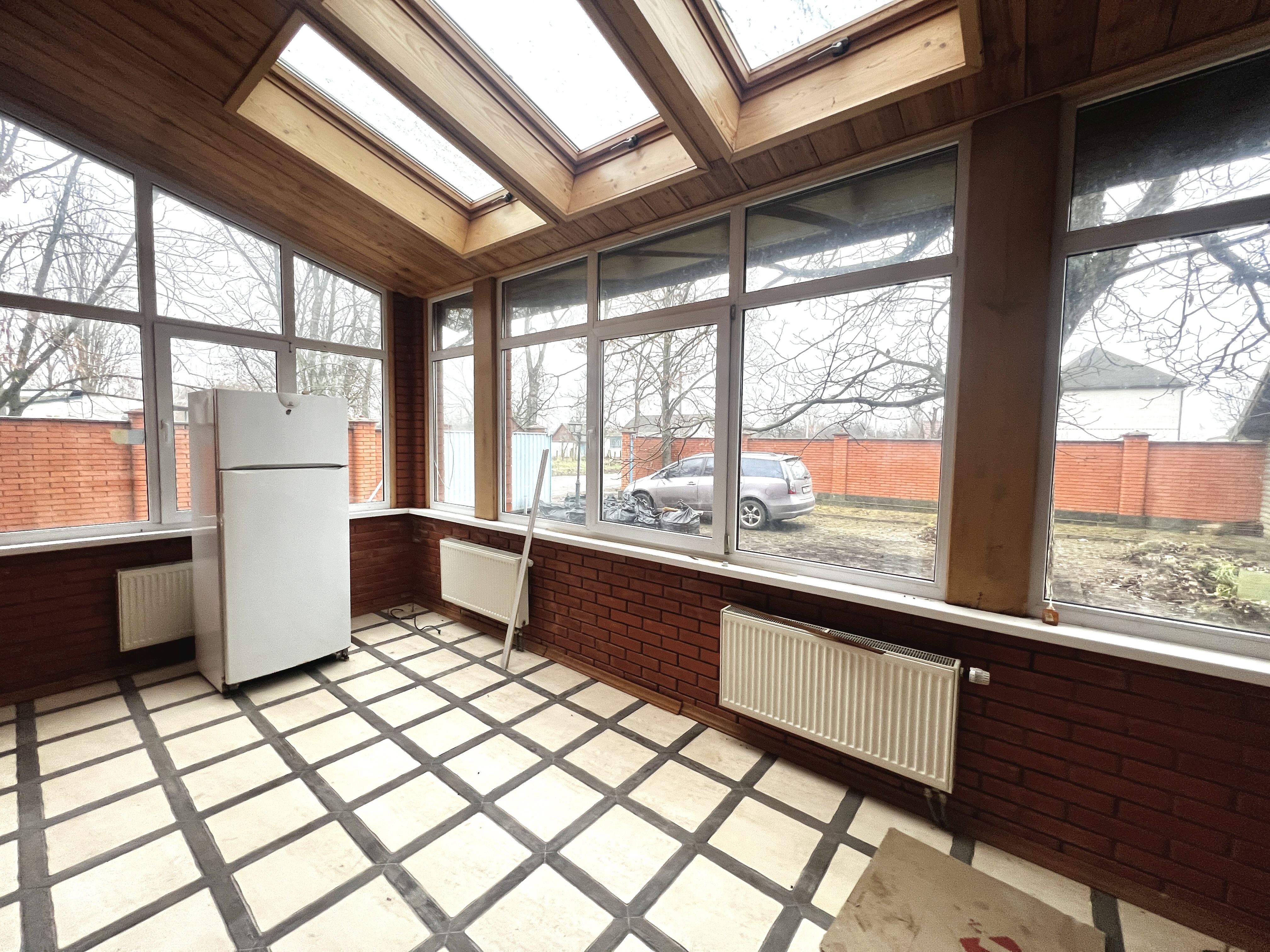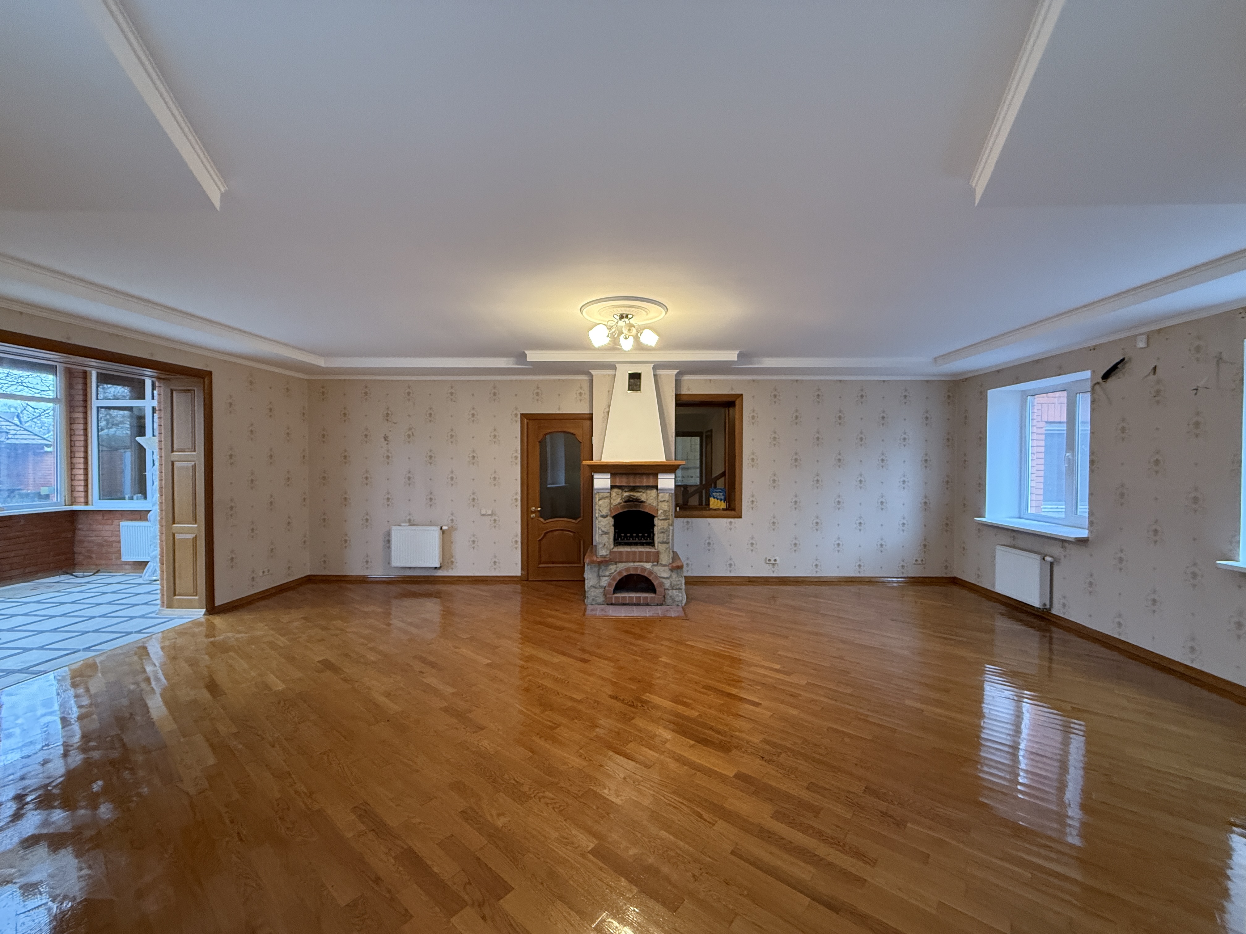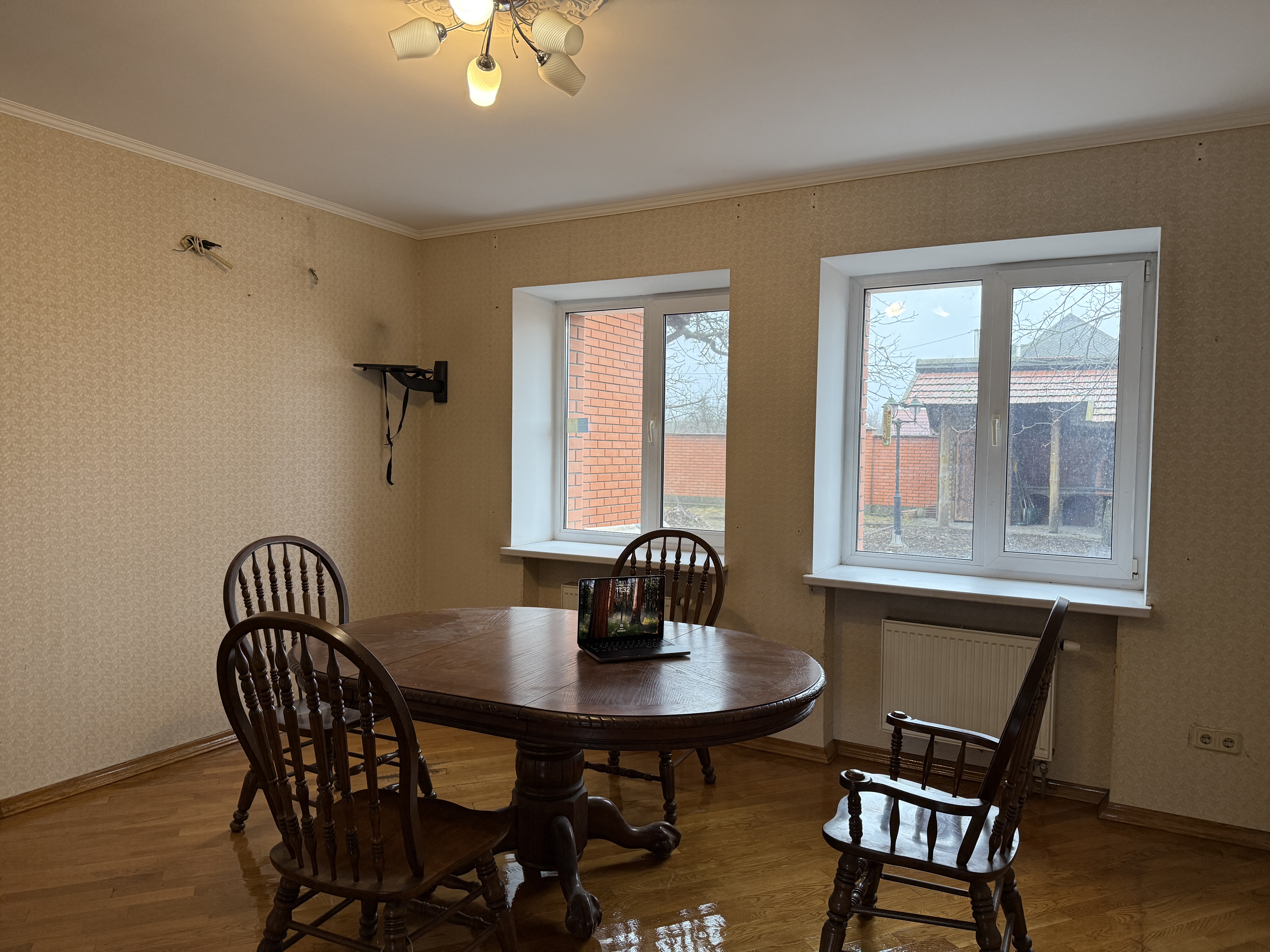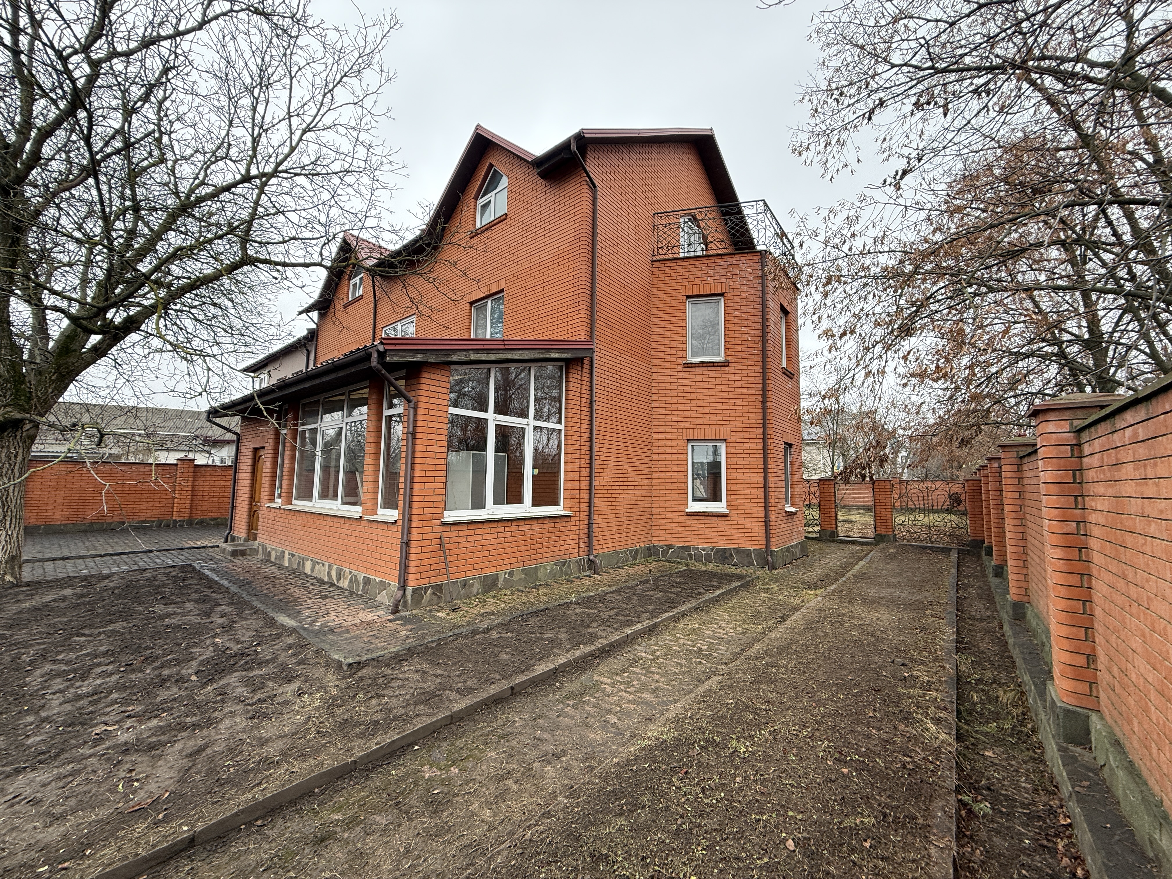 Будинок побудований у 2012 році, цегляний, утеплений та обкладений червоною цеглою. Загальна площа — 296 м². Є 5 великих кімнат і одна менша. Опалення газове (встановлений двоконтурний котел) плюс альтернативне — камін.