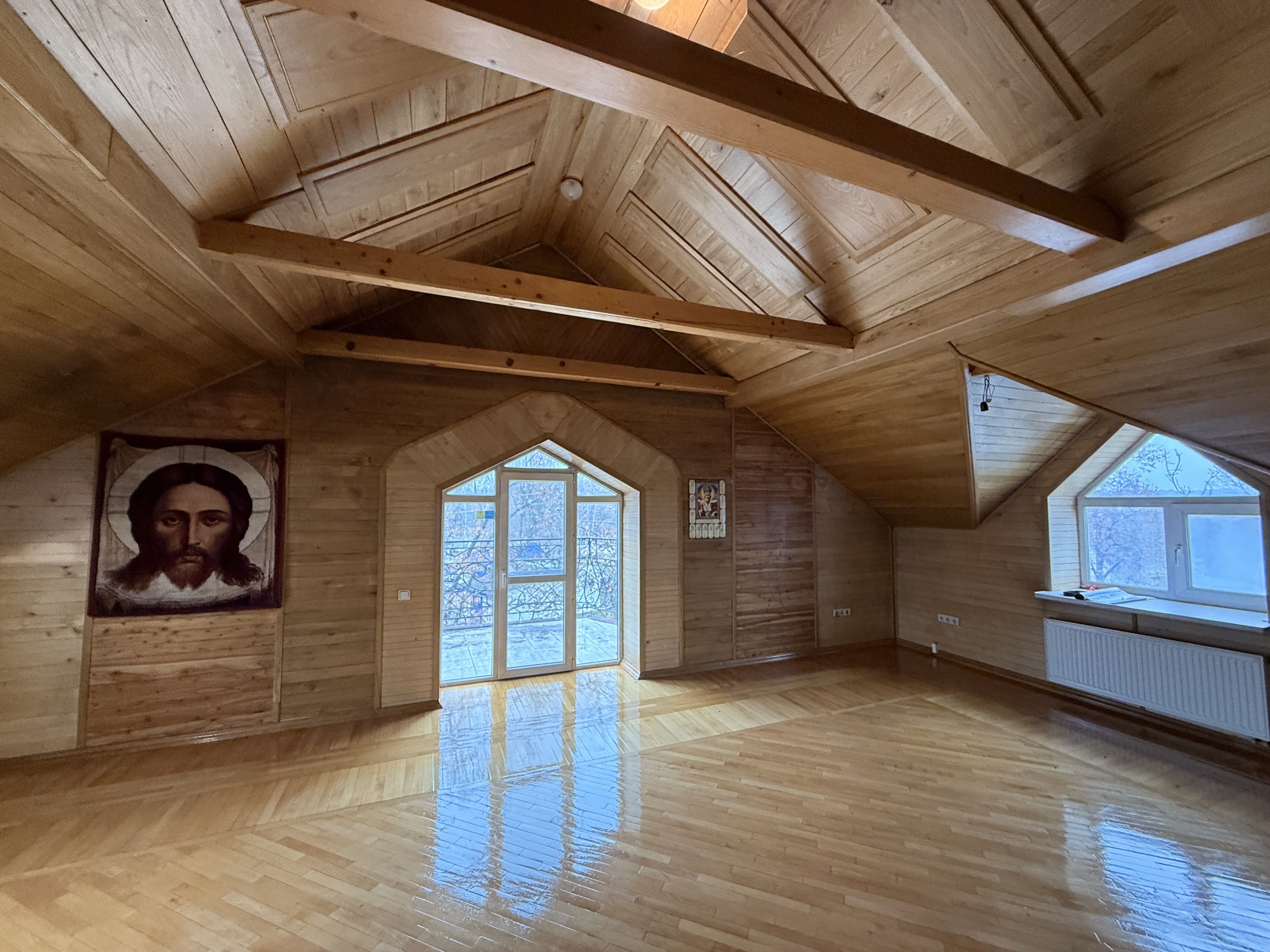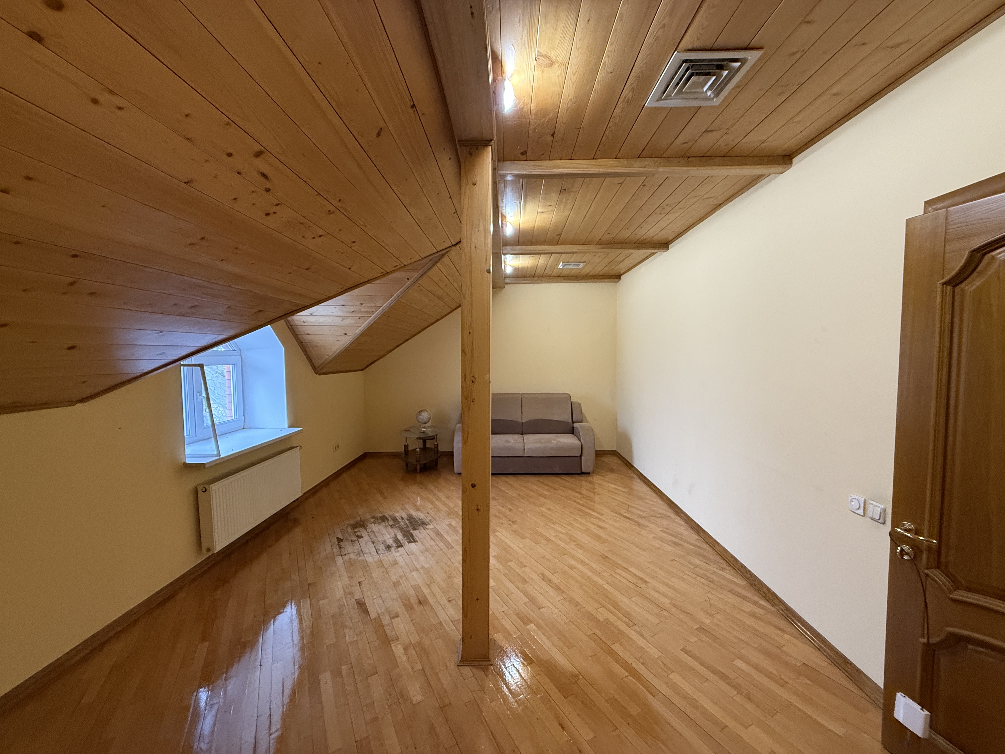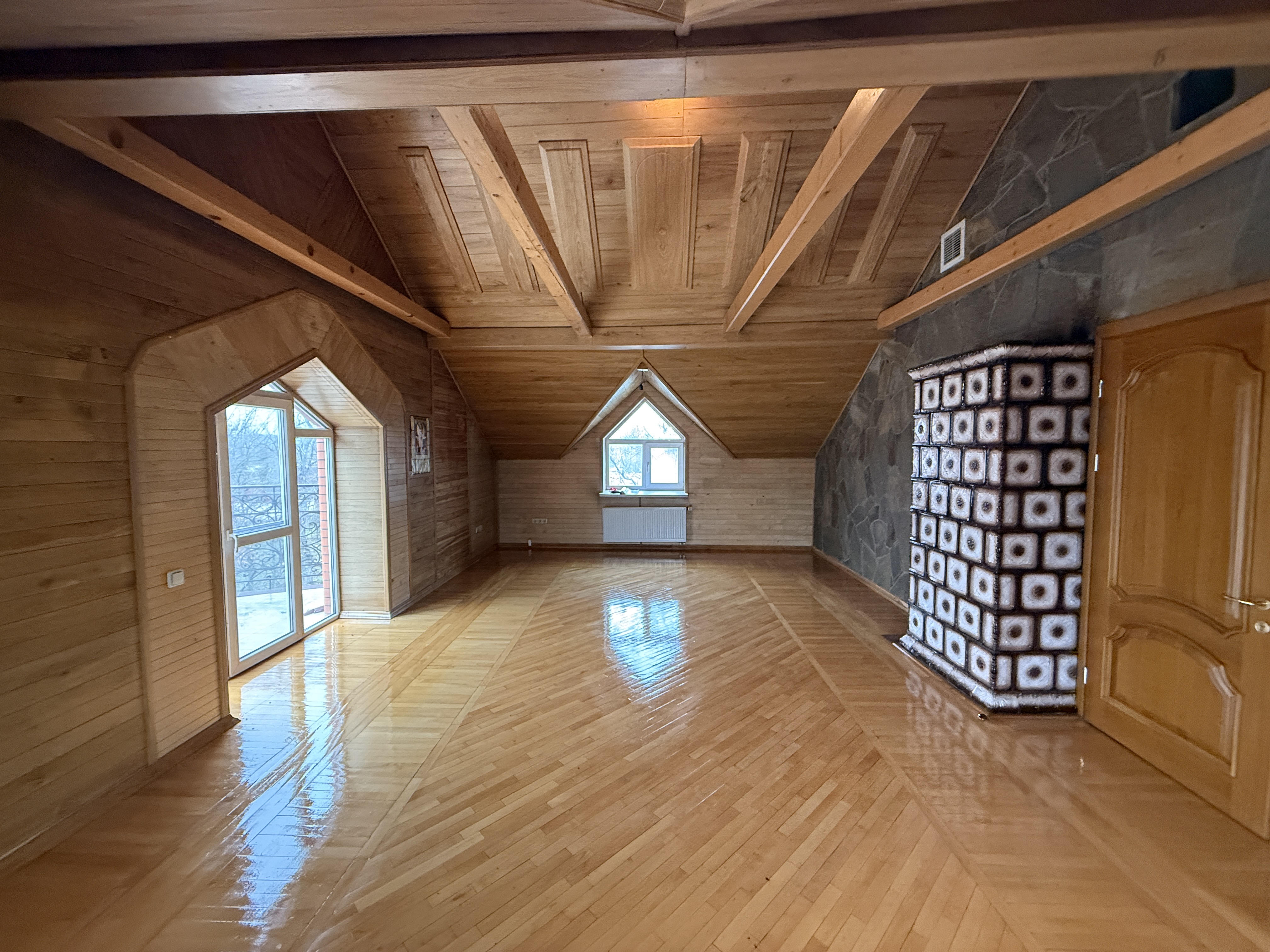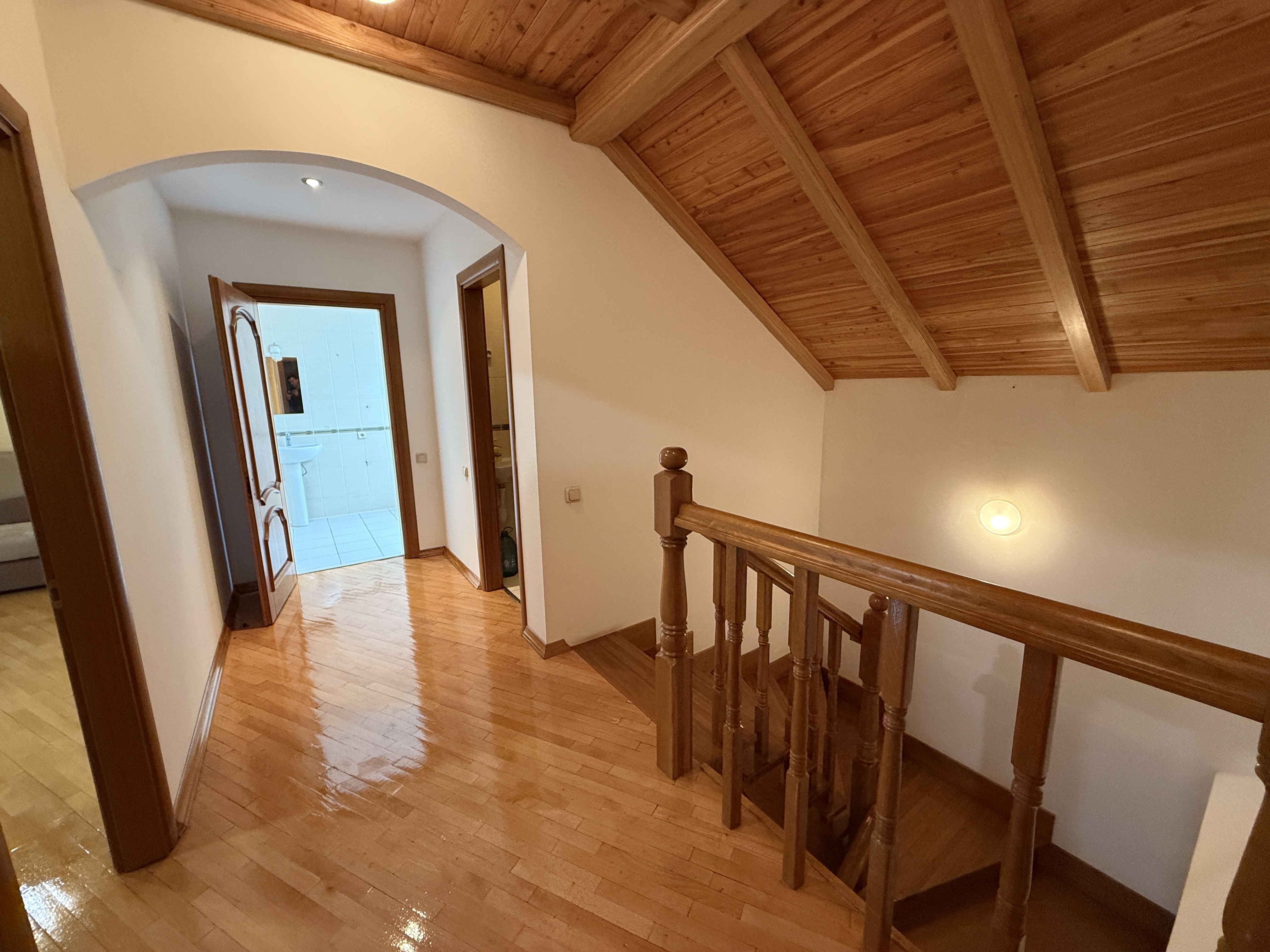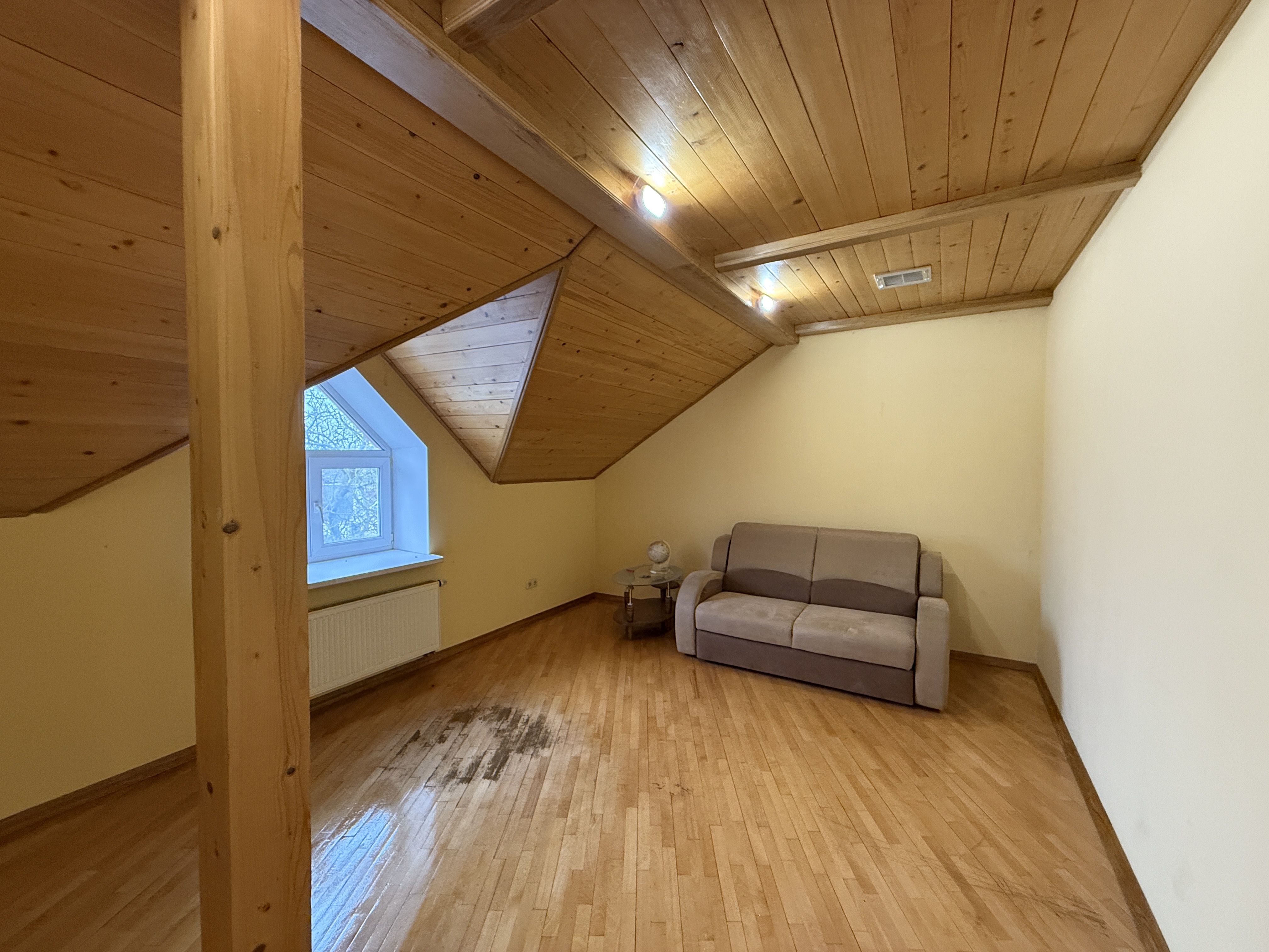 Оздоблення виконане якісно, приблизно 20% матеріалів — екологічна деревина. У будинку три поверхи, дві ванні кімнати та окрема душова. Є великий погріб, підходить для консервації та зберігання вина.