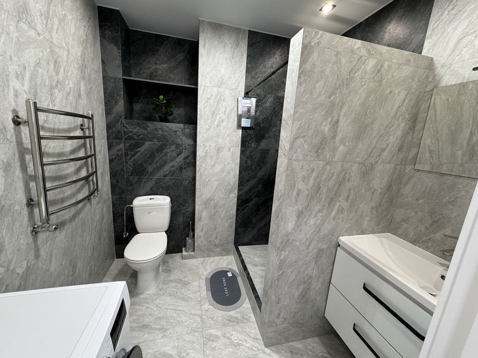 Квартира повністю готова до життя: мебльована та укомплектована необхідною технікою — холодильник, пральна машина з сушкою, посудомийна машина, духова шафа, плита, мікрохвильова піч, телевізор.