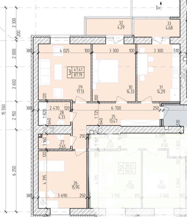 - Загальна площа — 92,8 м², 8 поверх