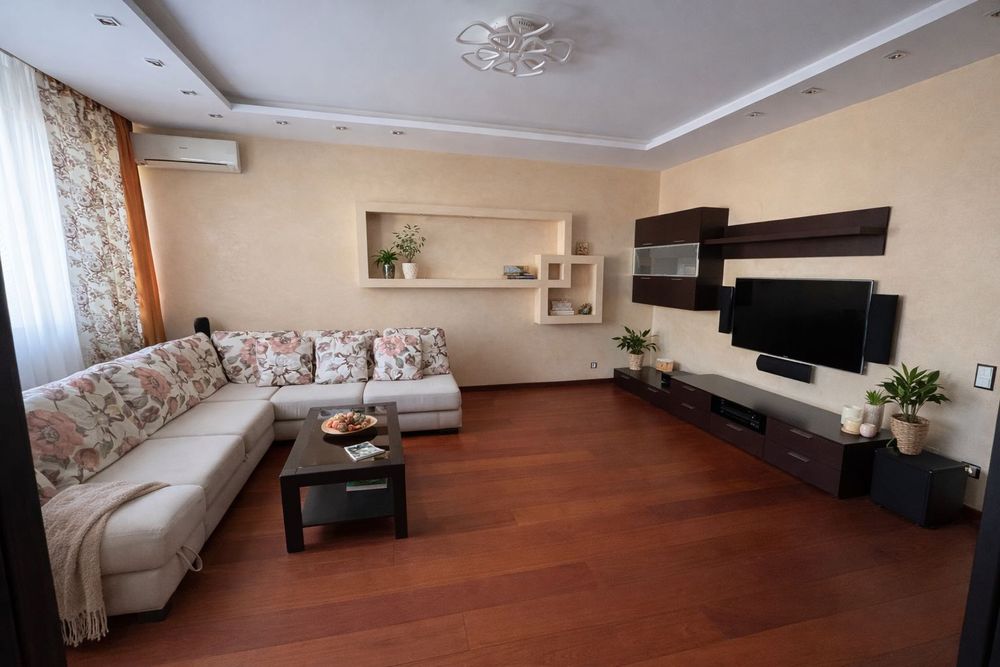 Планування: спальня, вітальня, кухня, 2 санвузли (душ + ванна з гідромасажем), балкон