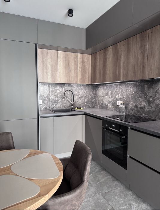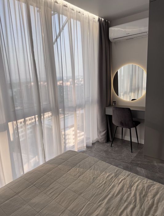 Встроенная техника остается, в квартире установлено 2 кондиционера, посудомойка Bosch, стиральная машина, микроволновка, духовая печь, индукционная плита, вся техника качественная известных брендов. Вся мебель сделана под заказ из качественных материалов, вся фурнитура бренда Blum. Красивый вид из окна на город и реку Днепр. Автономное отопление, електро котел, водяной теплый пол по всей квартире.