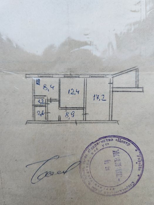 Загальна площа 53,8 м.кв, кімнати 17.2, та 12.4. Кухня 8.4м.кв,