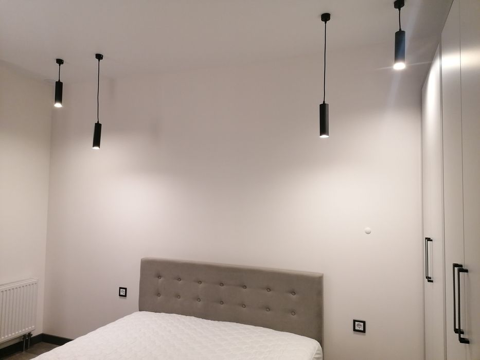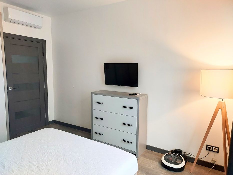 Квартира обладнана дизайнерськими меблями, які були виконані під замовлення, двоспальним ліжком з матрацом середньої жорсткості, інверторним кондиціонером, який працює до -15 °С, 2-ма телевізорами, вбудованою технікою (холодильник, духова шафа, варильна поверхня), мікрохвильова піч, електричний чайник, робот-пилосос, бойлер на 80 літрів, пральна машинка, датчики затоплення у ванній та на кухні.
