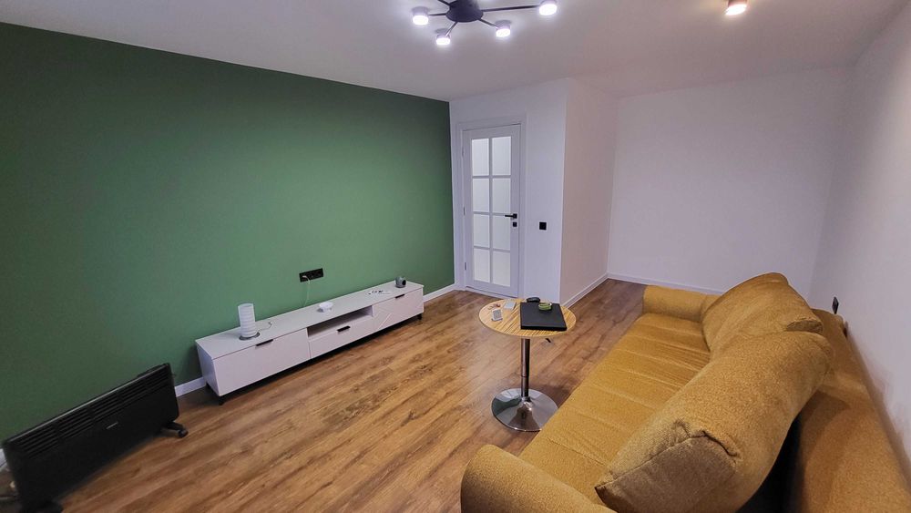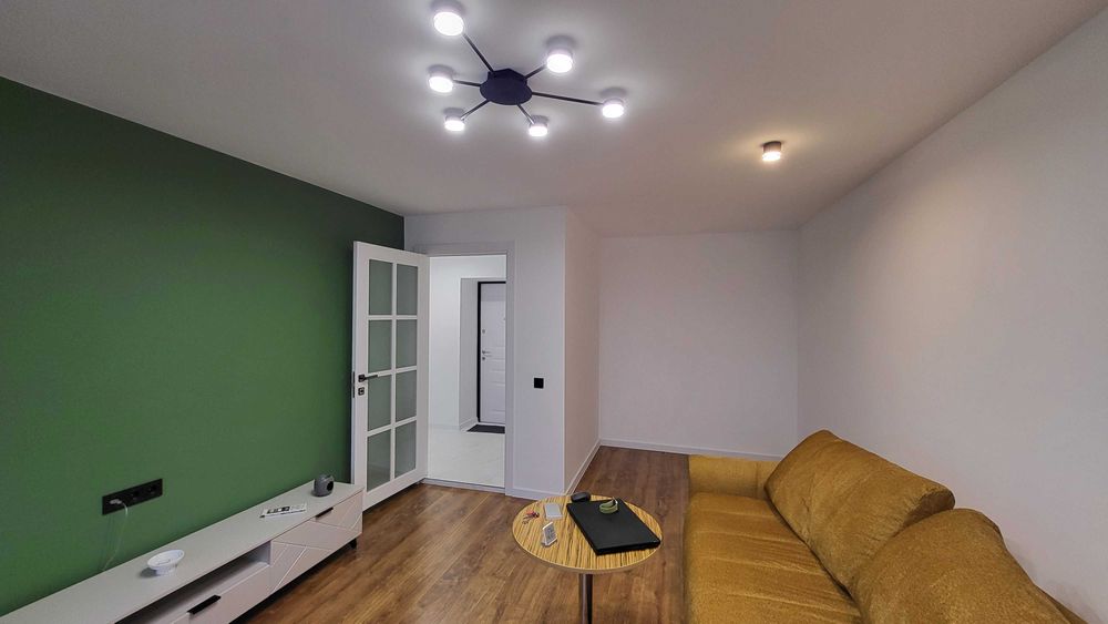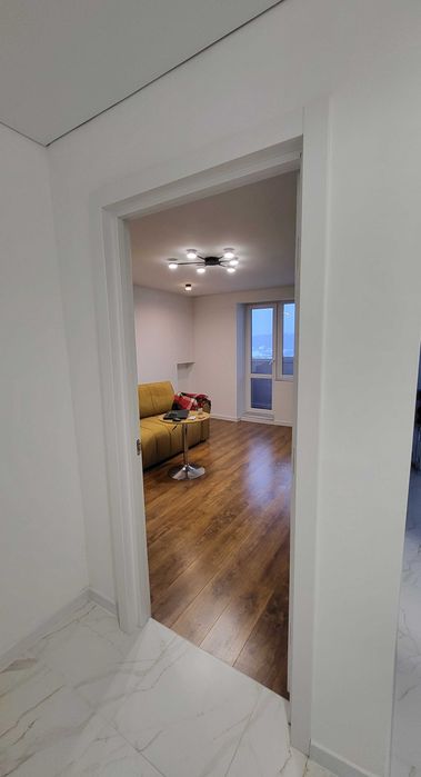Частково вмебльована ( як на фото), бракує лише кухонною стінки, але вже куплені духовка та варильна поверхня. Також має доїхати шафа купе .