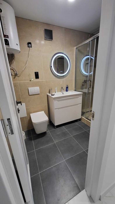 Повністю замінена сантехніка, всі труби, крани, лічильники ітд. Душева кабіна та ванна викладені керамогранітною плиткою, новий бойлер.