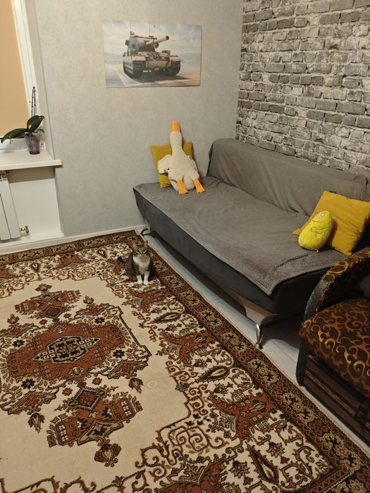 Власник. Продам двокімнатну квартиру в Гречанах.; Продам двокімнатну квартиру в Гречанах. Загальна площа - 60кв.м. Стіни цегляні, товсті. Третій поверх з чотирьох. Квартира двостороння з роздільними кімнатами і роздільним санвузлом. Квартира тепла, світла, суха з індивідуальним опаленням. Є місткий гардероб. Меблі залишаються за домовленістю.В коридорі є кладовка. Поруч школа, садочок, стадіон, магазин, зупинка громадського транспорту. Прибудинкова територія закрита, є відеонагляд.