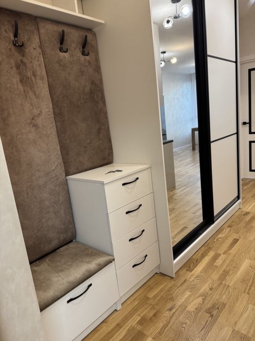 Також є тумбочки біля ліжка та диван на кухні.