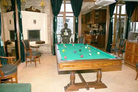 отоплением, кондиционером, бильярдом, камином, кинотеатром, спутниковым телевидением, встроенной