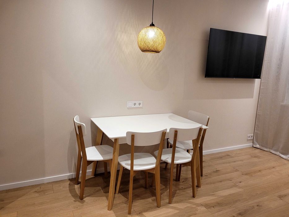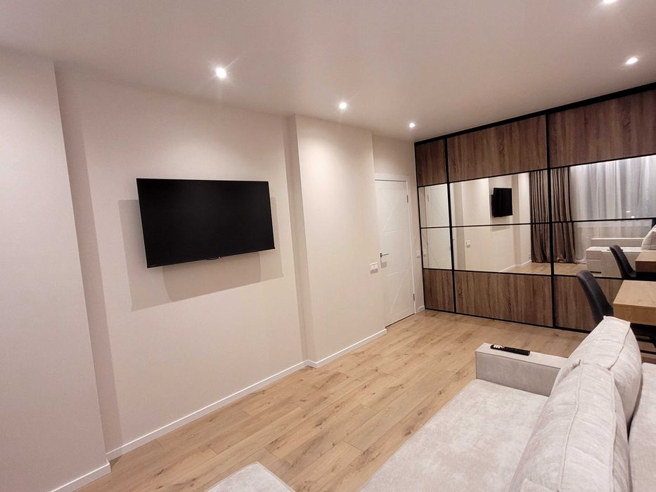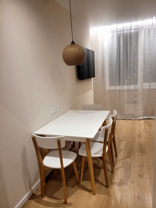 Комплектація: квартира укомплектована всією необхідною технікою (варочна поверхня, духова шафа, холодильник, витяжка, посудомийна, пральна та сушильна машини, мікрохвильова піч), великі смарт-телевізори.