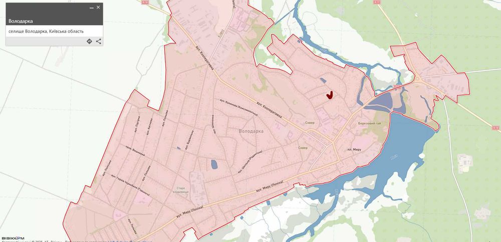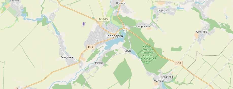 - Київська обл, Білоцерківський р-н, смт Володарка-адмін. центр Володарської селищної громади. Розташоване на обох берегах річки Рось (притока Дніпра).