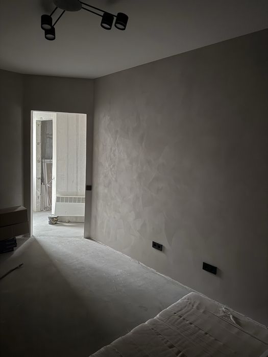 На одной из из стен коридора отшпаклевать стартом немного, чтоб выйти в уровень с щитками и счётчиком - шпатлевка есть, стеклохостл есть, финиш паста есть. Да и краска была, если не ошибаюсь.