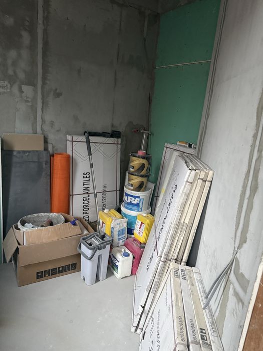 В ванной все готово полностью для укладки плитки. ПЛИТКА УЖЕ КУПЛЕНА и стоит в ванной. В очень красивом цветовом сочетании! (1 - стены, 2- пол на одном из фото)