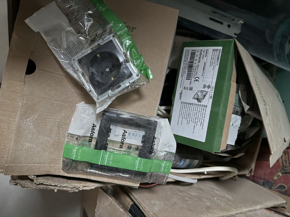 Провода в проводке от Cablex, автоматы, УЗО, розетки (Hager, Schneider), защиты от удара током и прочие плюшки. Розетки со шторками в черном цвете.