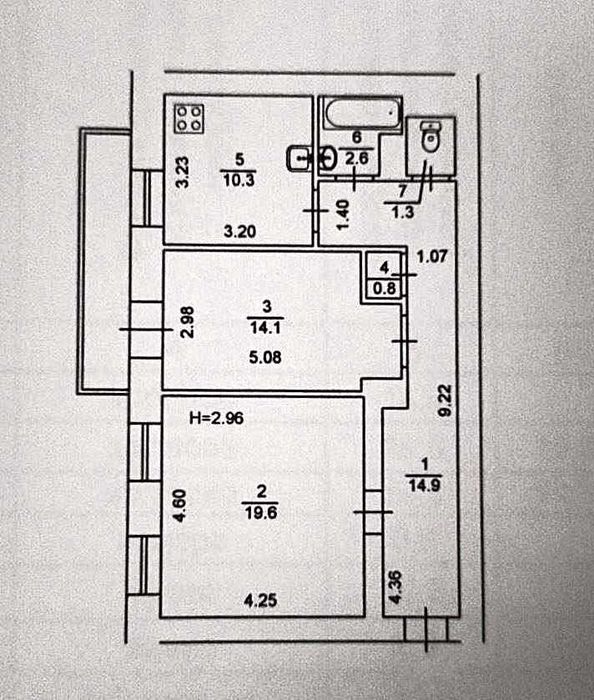 Висота стелі: 2,96 м