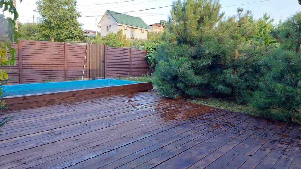 Хортицький; Дом дача на вырве.; Дом на вырве. Размер 6х7.5. Кухня гостиная, санузел с душем туалет рукомойник. Кладовка. 2 спальни. По всему дому теплый пол. Есть камин на дровах. Дом очень теплый. Подходит для круглогодичного проживания. Перед домом навес 7х6 со всей необходимой мебелью и мангалом из кирпича. Территория 6 соток по всему периметру забор 2м высоты. Разделена пополам. Со стороны дома бассейн 6х3. Чан. Баня. Терраса перед бассейном. С другой стороны хоз двор. Сарай. Въезд бетон для 2 машин и большие раздвижные ворота. Своя скважина 30 метров по граниту. Вода питьевая.