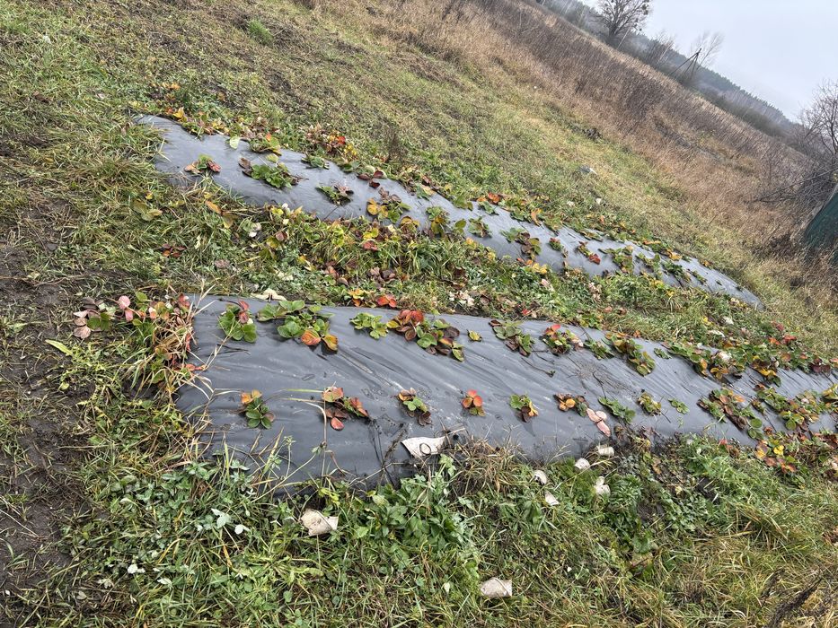 На городі — полуниця елітних сортів на плівці (урожай уже з наступного року):Korona, Rumba,Червона мрія