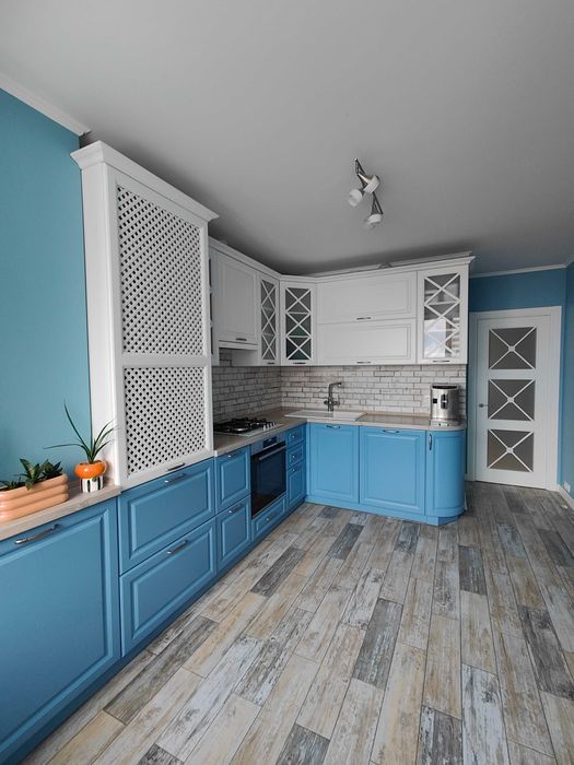 У квартирі ремонт виконаний з якісних матеріалів. Індивідуальне газове опалення. Стіни пофарбовані, підлогове покриття в кімнатах– паркетна дошка (дуб).
