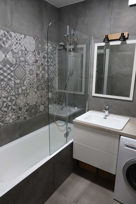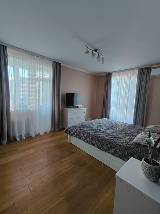 Роздільний санвузол - оздоблений керамогранітом, тепла підлога, бойлер та фільтри очистки води. Встановлено 3 кондиціонера. Кухня – фарбований МДФ, фурнітура Blum. Техніка – газова варильна поверхня, духова шафа, посудомийна машина, холодильник, пральна машина. Встановлено 2 великі вбудовані шафи + 1 шафа на лоджії. Деякі меблі та техніку забираємо.