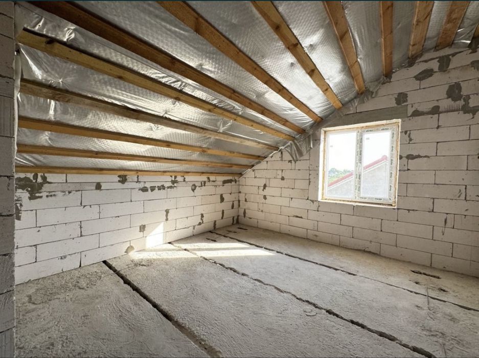* Два поверхи (газобетон 40 см + утеплен, натуральна черепиця, плити перекриття)