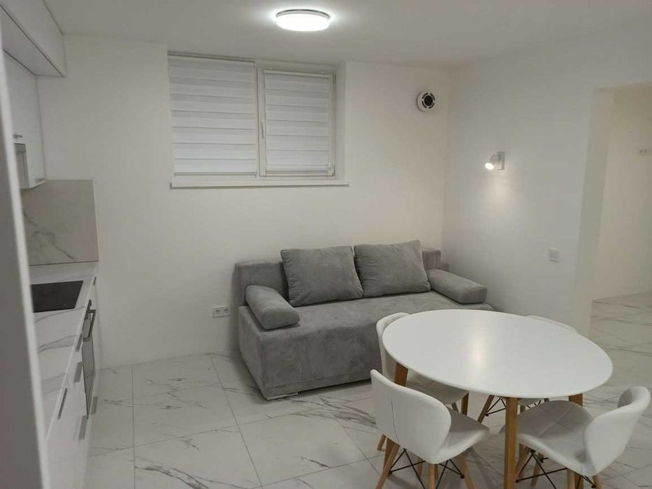 Спальня обладнана двоспальним ліжком з ортопедичним матрацом та комодом. Простора кухня з розкладним диваном, холодильником, духовою шафою, індукційною варильною поверхнею та економним і тихим електрокотлом Kospel.