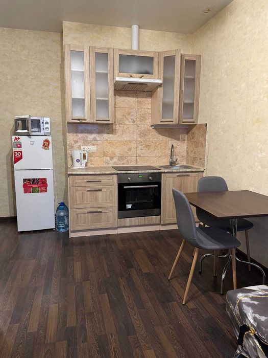 Здається в довгострокову оренду затишна 1-кімнатна квартира (студія) площею 30 м² у новому житловому комплексі «Міністерський». Адреса: вул. Юрія Кондратюка, 3. Поверх: 27-й із 27 .