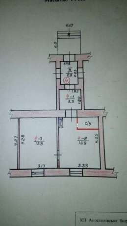 Днепропетровская область пгт. Апостолово. Квартира расположена по ул. Вокзальная в р-не ж-д вокзала. Общая площадь 32,25 кв. м.