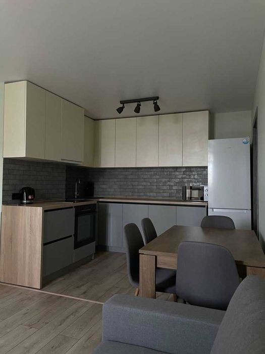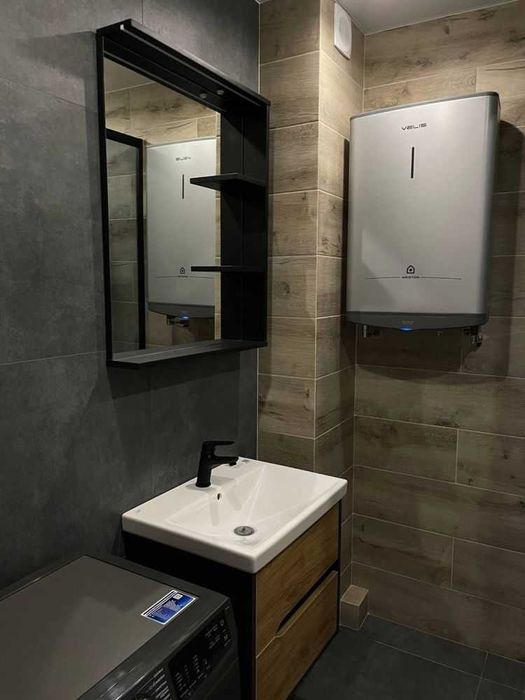 Квартира повністю укомплектована новими меблями та сучасною побутовою технікою, зокрема: бойлер, пральна машина, телевізор, холодильник, мікрохвильова піч, чайник, пилосос, варильна поверхня, духова шафа, витяжка, 2 кондиціонери.